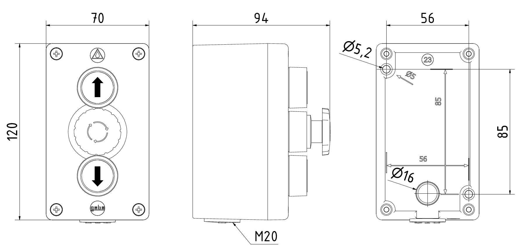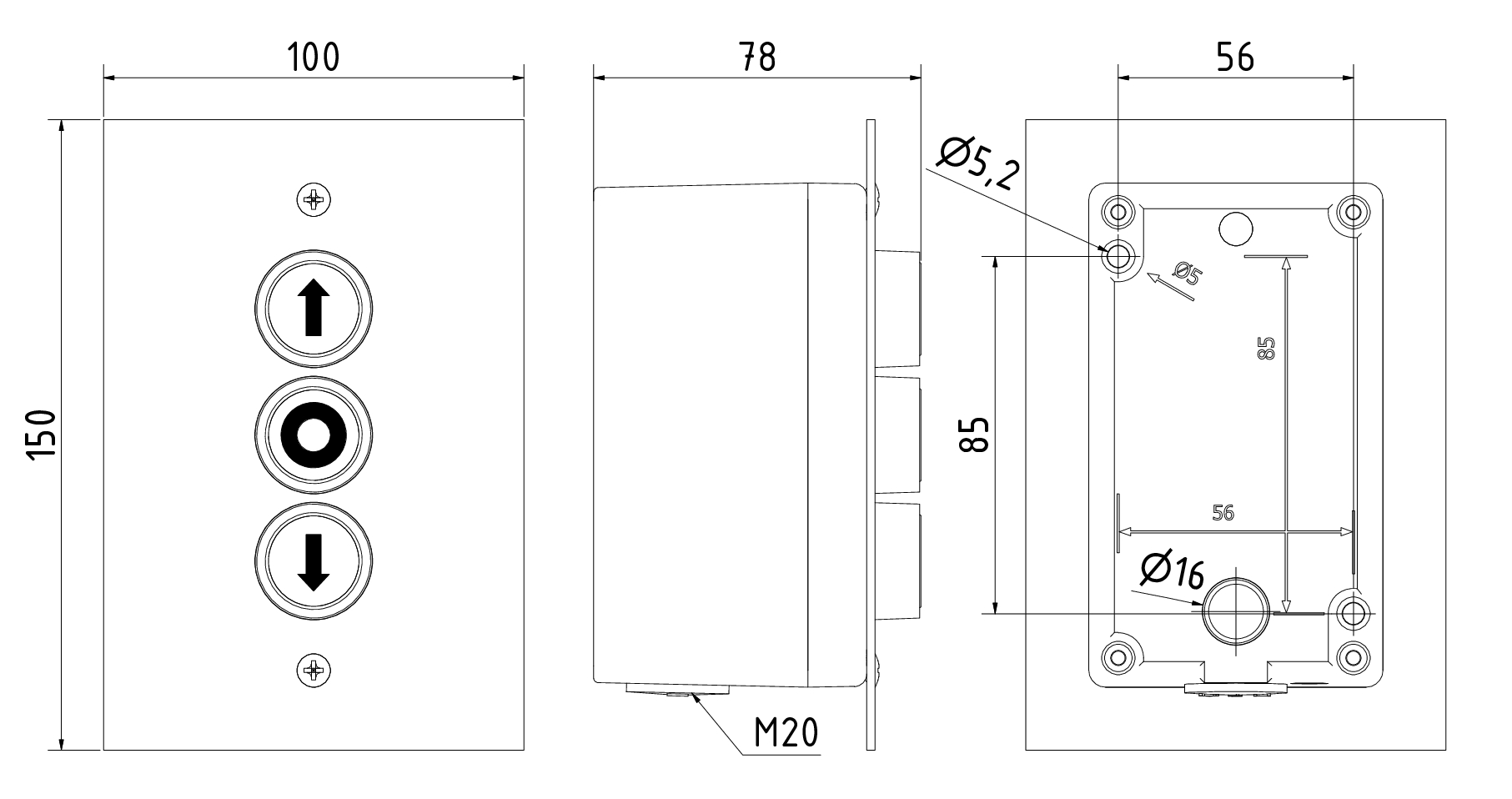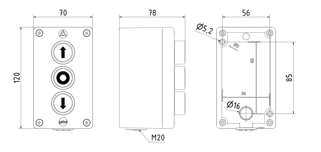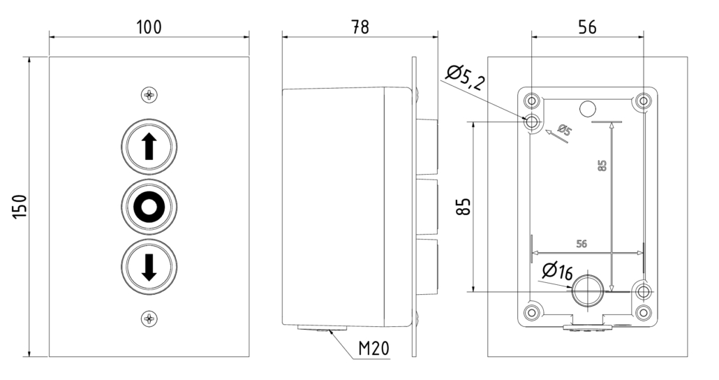 Drucktaster für den Industrietorbau im Aluminiumgehäuse; Schutzart IP 65
